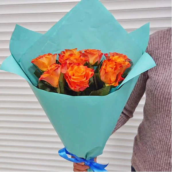 Внимание: сорт роз может отличаться от сорта на картинке, оттенок допустим от ярко-оранжевого (сорт Нина) до светло-оранжево-желтого