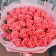 роза розовая - 25 шт., упаковка, лента. Оттенок роз может отличаться от представленного на фото